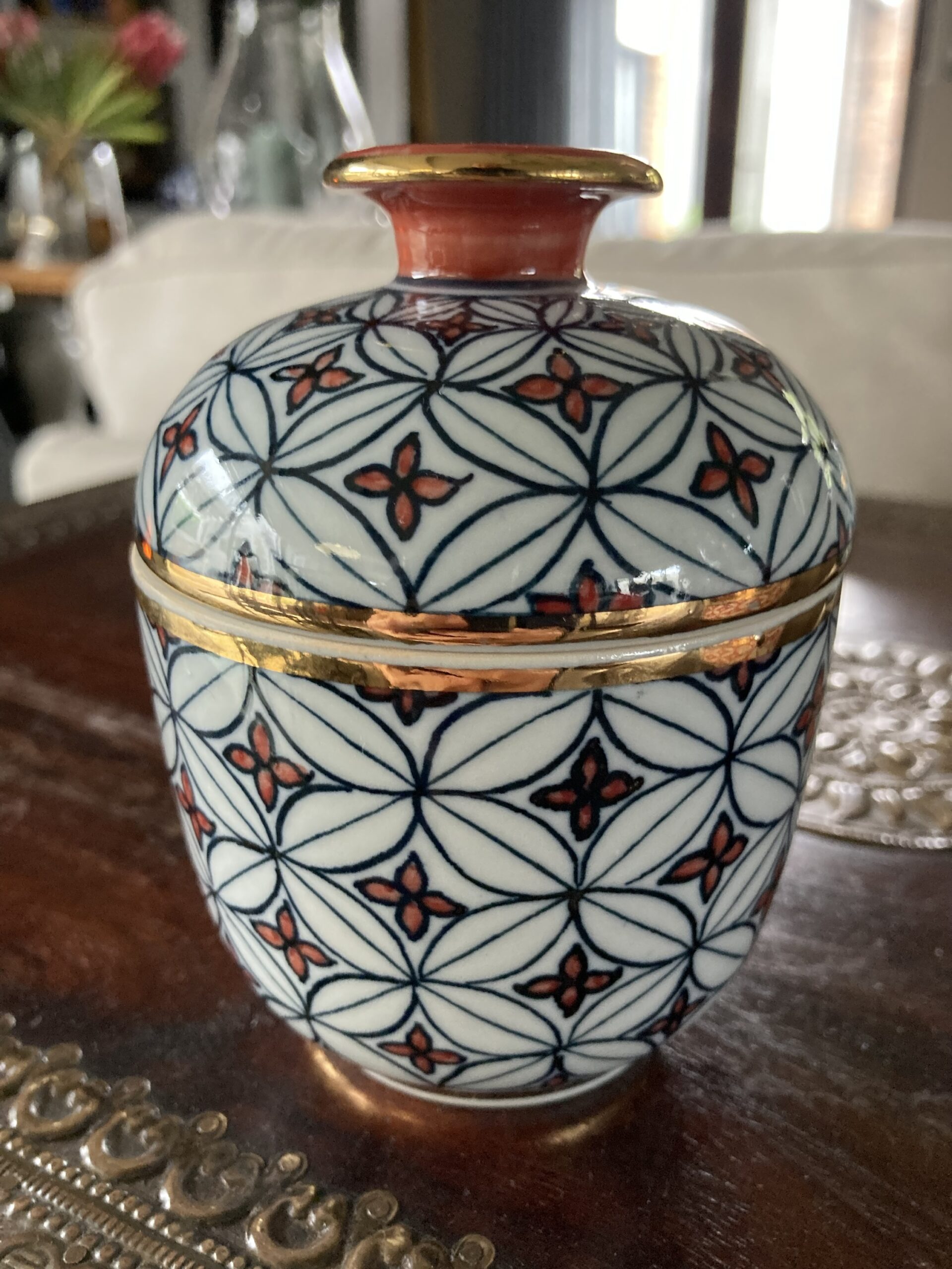 195gms pure soy wax hand poured into one of our exclusive range of handmade ceramics. This stunning jar is black, coral and white with a gold rim and is 110mm high and 85mm wide.