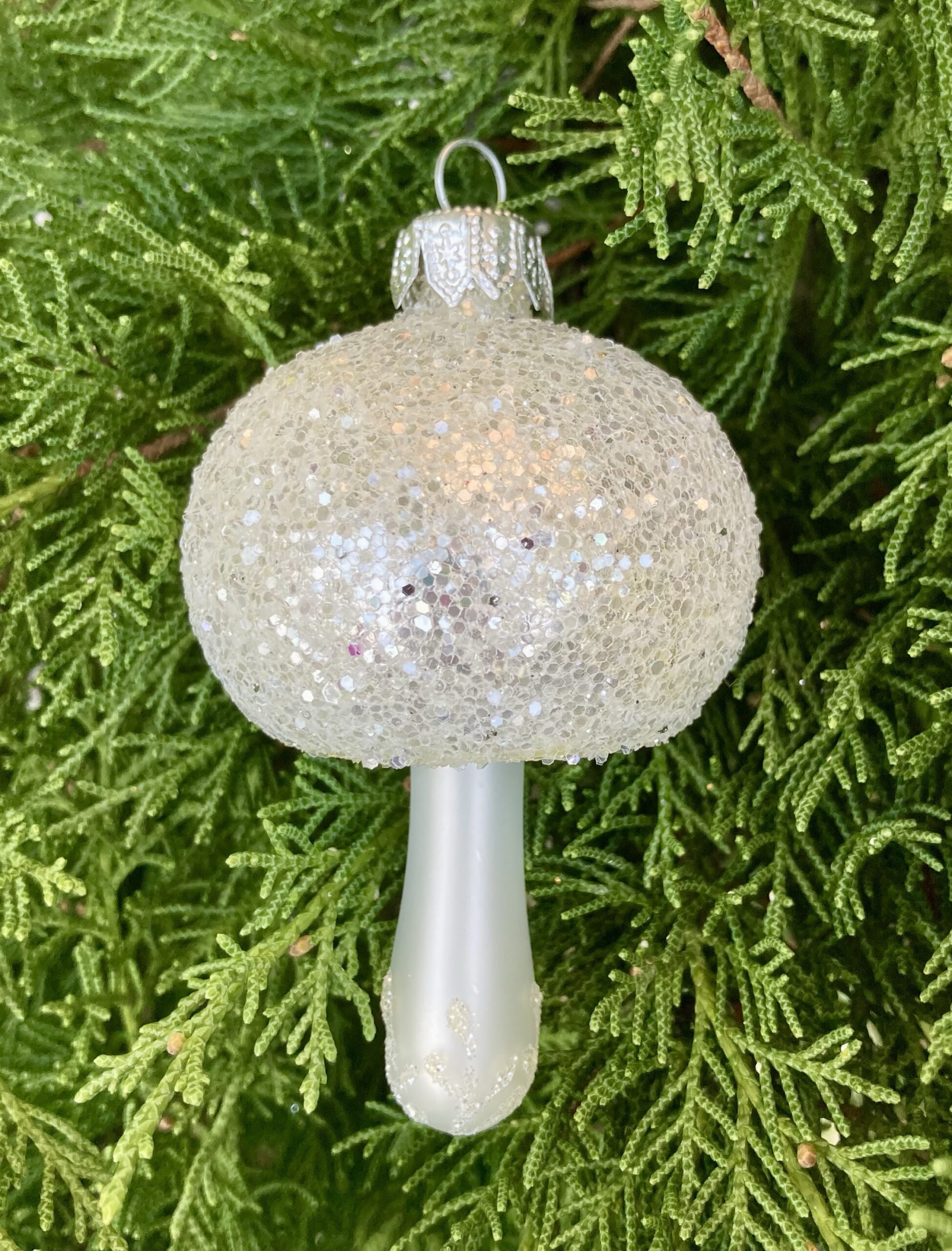 • Hand crafted glass ornament decorated with glass glitter