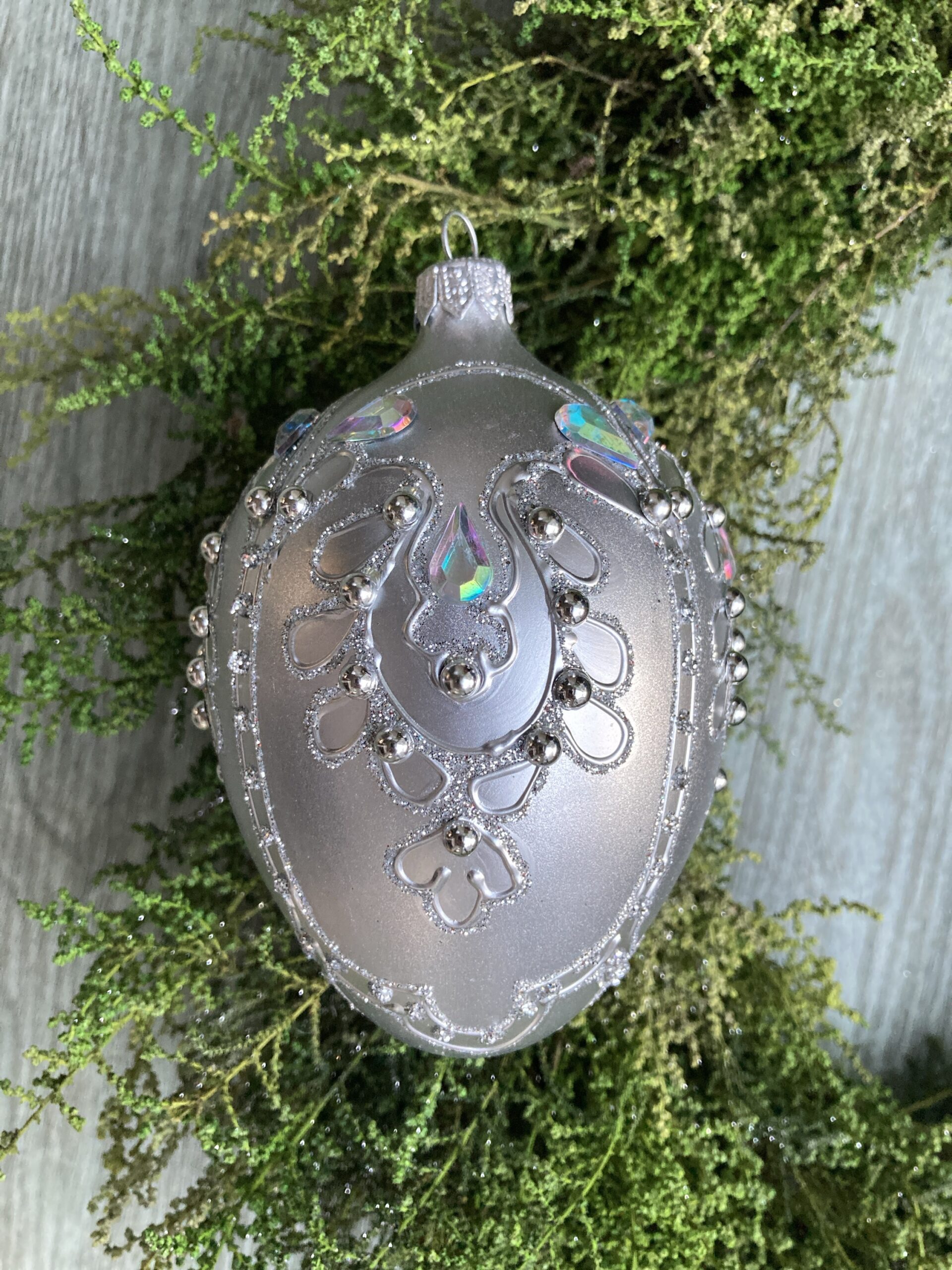 - Moulded glass egg shaped ornament, inspired by P C Faberge