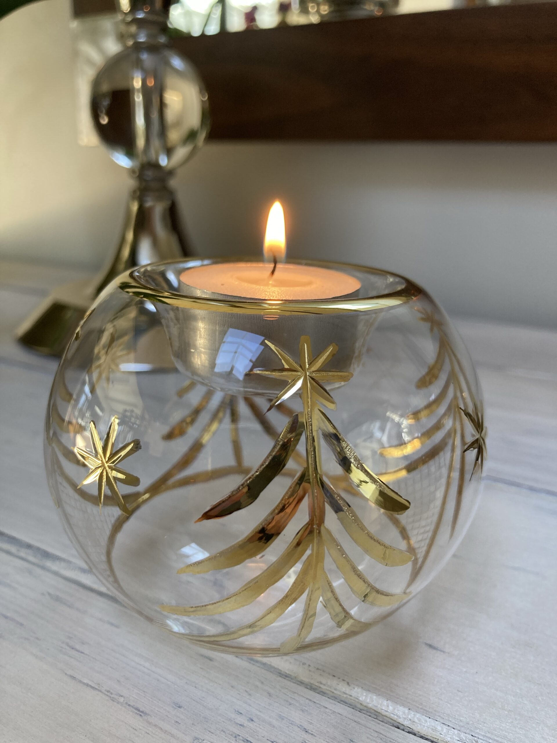 • Glass tealight candle holder mouth-blown from German Pyrex glass
