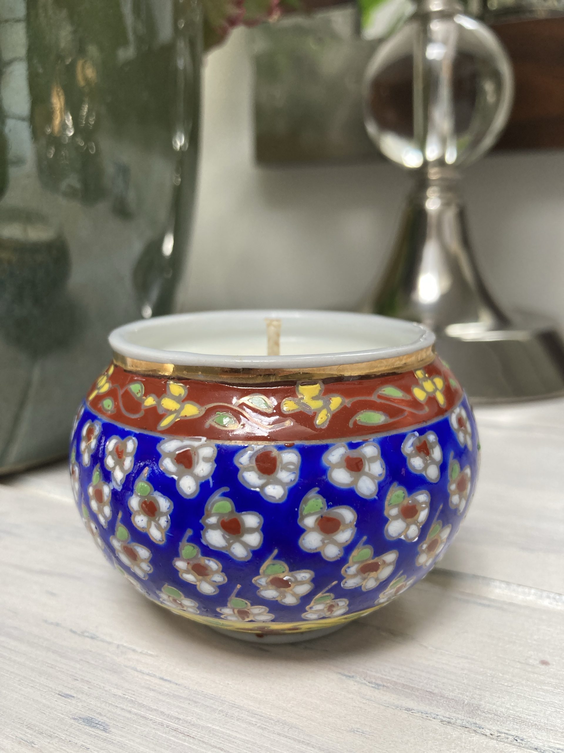 80gms pure soy wax hand poured into one of our exclusive range of handmade ceramics. This gorgeous small trinket bowl is in the Benjarong style.