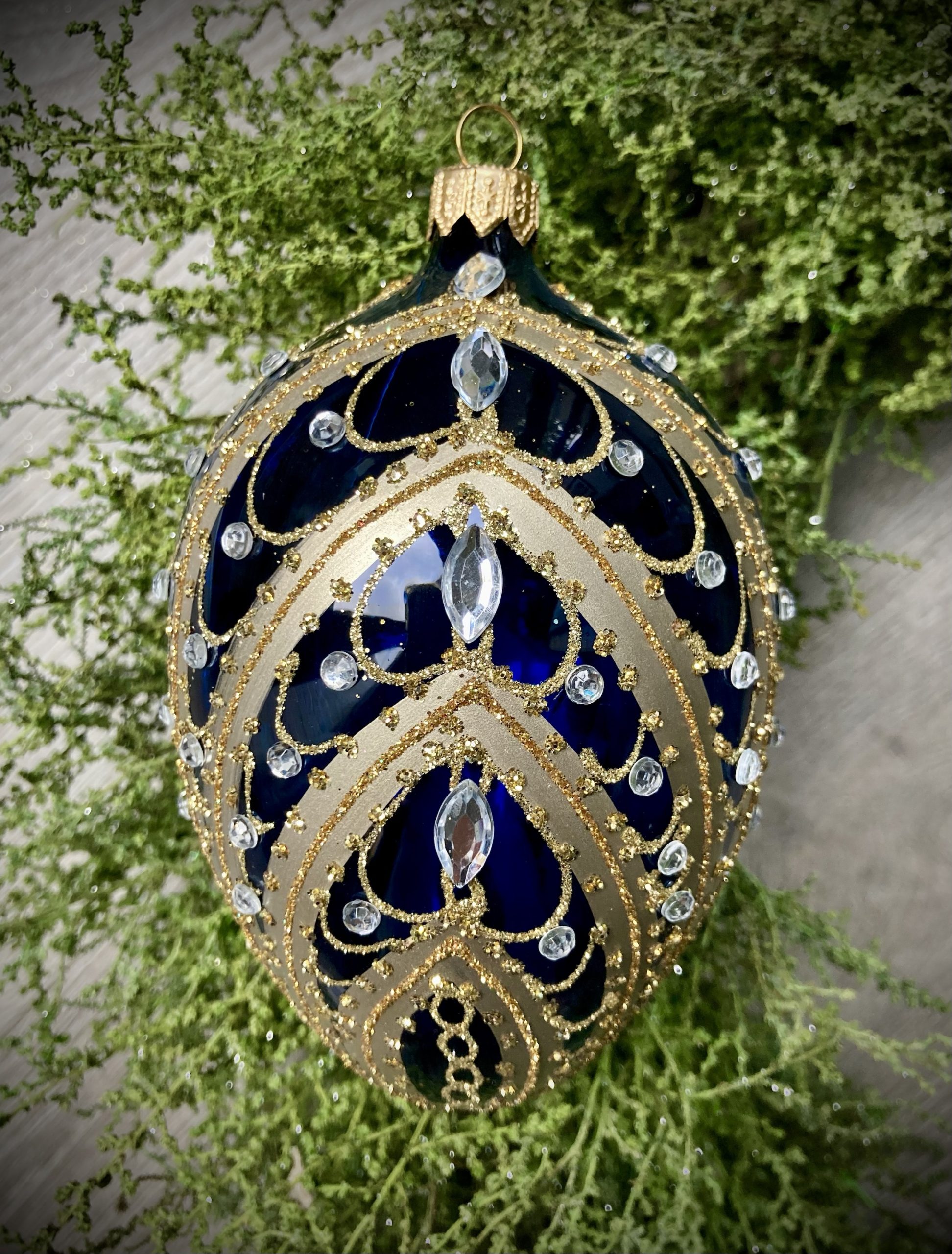• Moulded glass egg shaped ornament, inspired by P C Faberge