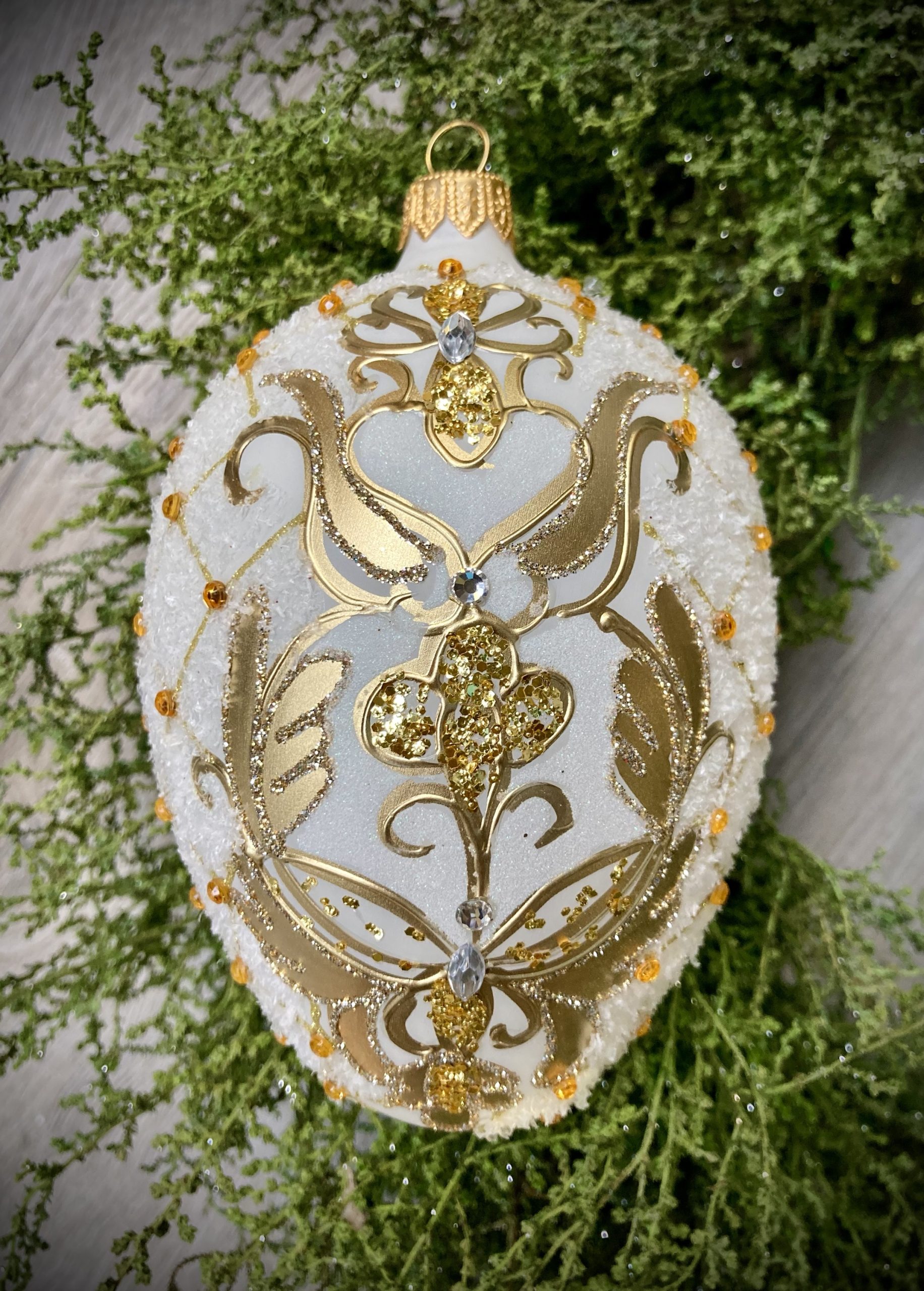 • Moulded glass egg shaped ornament, inspired by P C Faberge