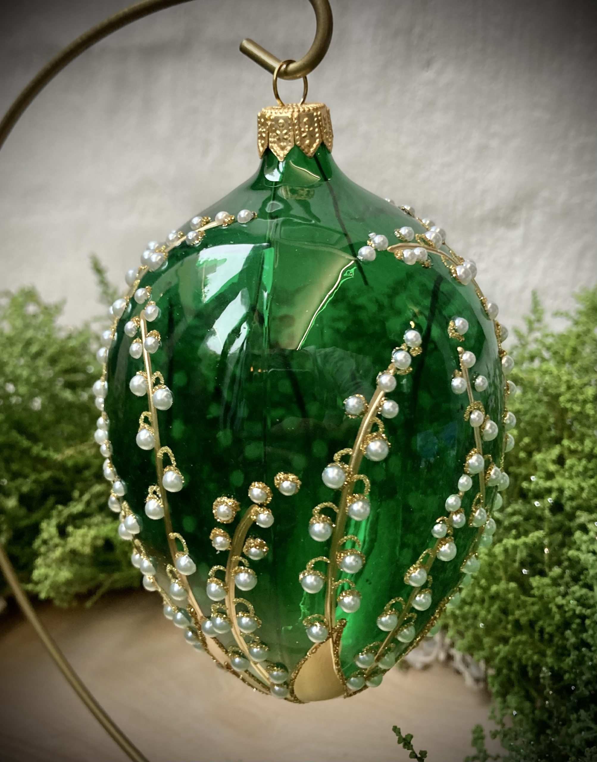 • Moulded glass egg shaped ornament, inspired by P C Faberge