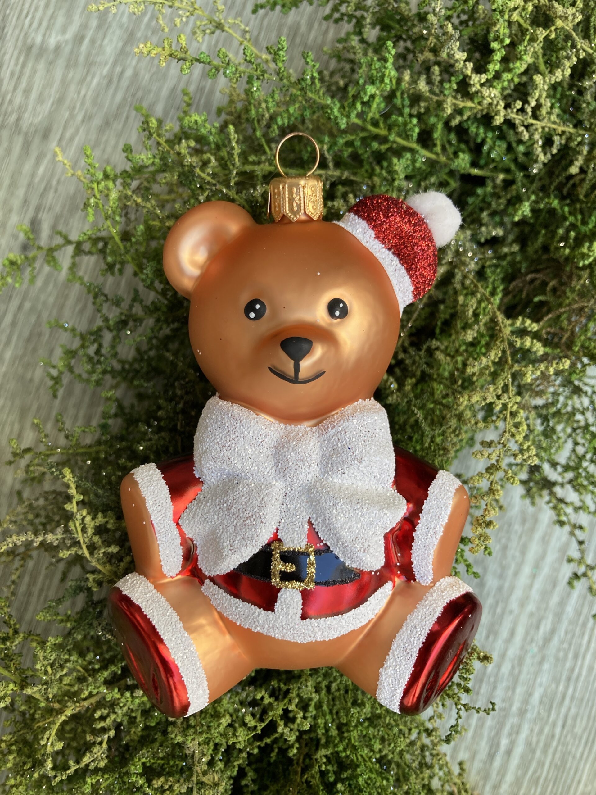 - Moulded glass ornament in the shape of a teddy bear as Santa