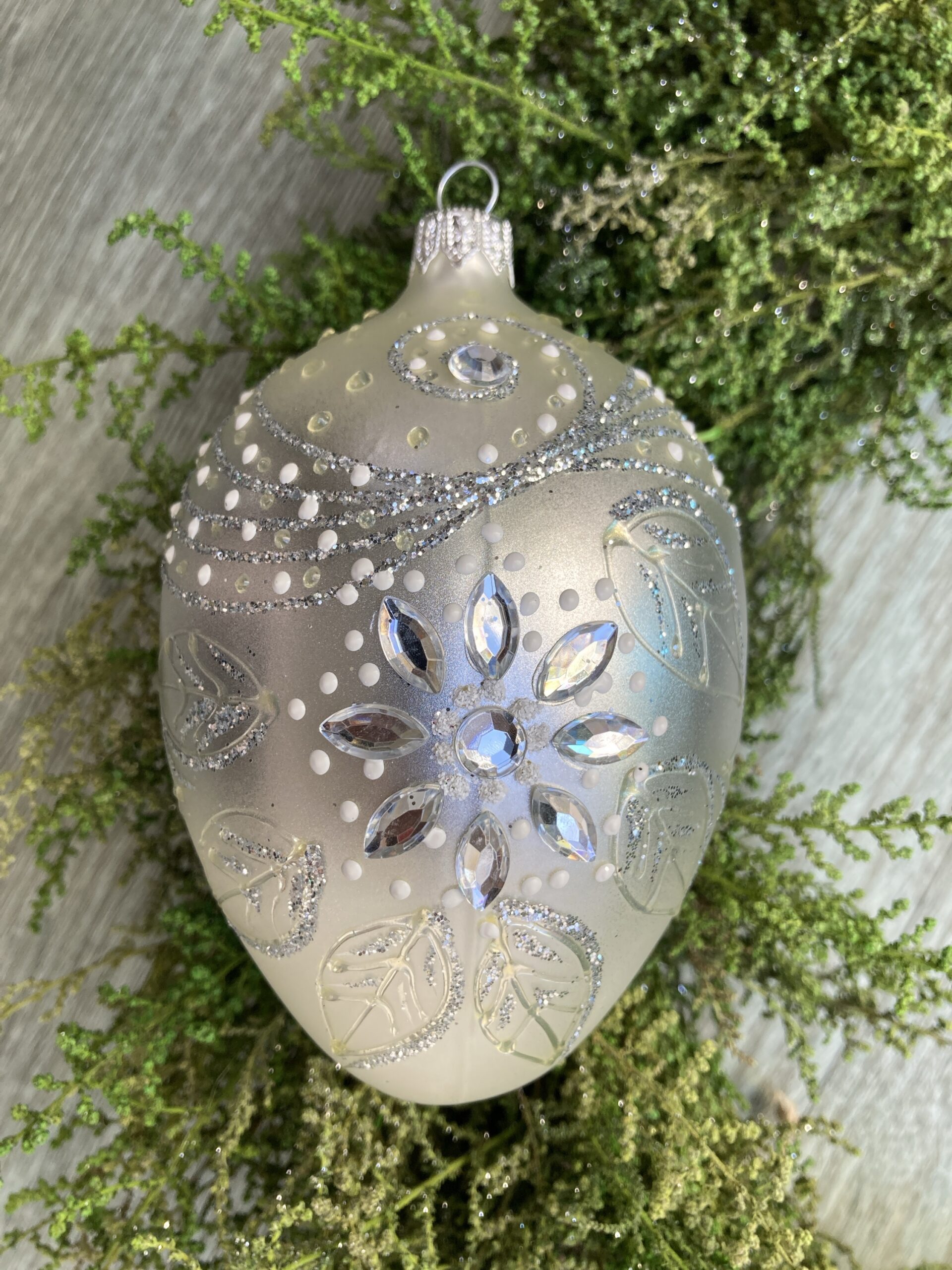 • Moulded glass egg shaped ornament, inspired by P C Faberge