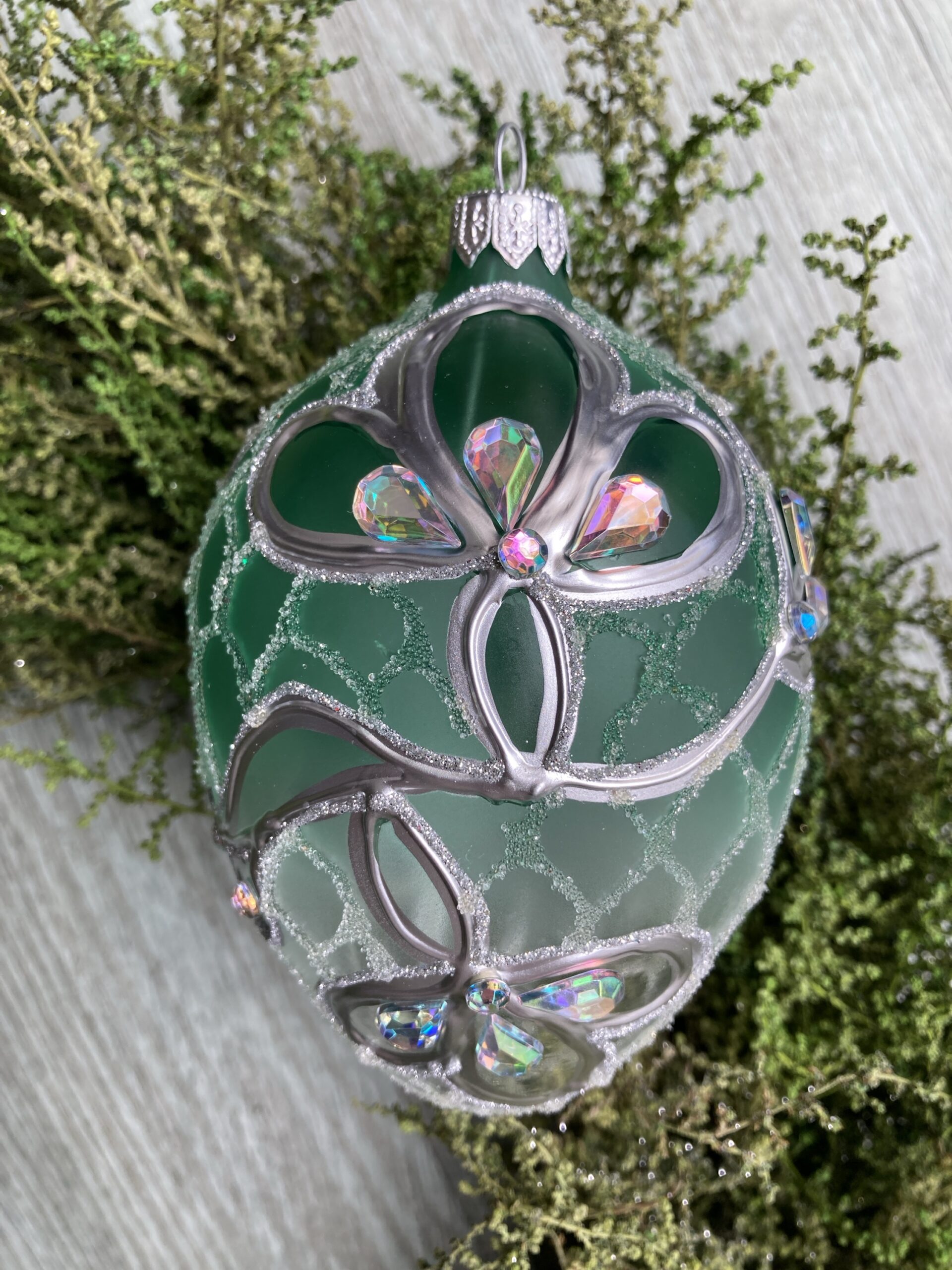 • Moulded glass egg shaped ornament, inspired by P C Faberge