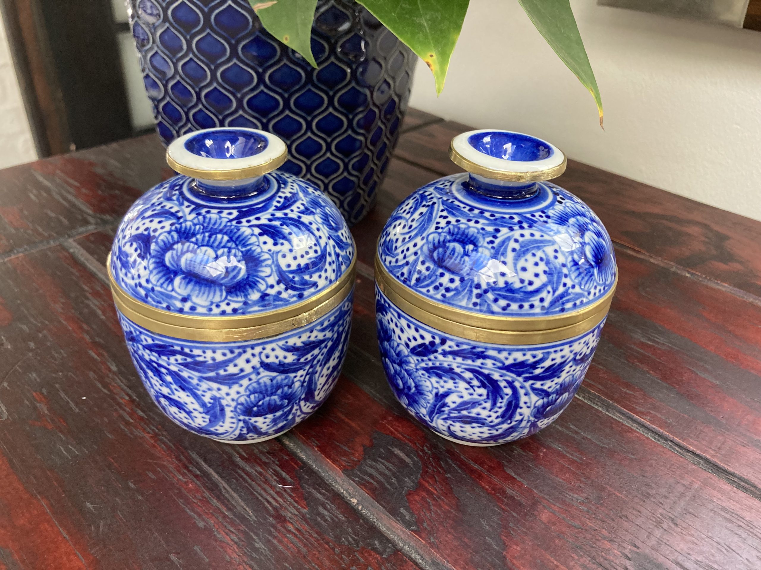 185gms pure soy wax hand poured into one of our exclusive range of handmade ceramics. This jar has a royal blue and white design with metal trim and is 110mm high and 85mm wide.