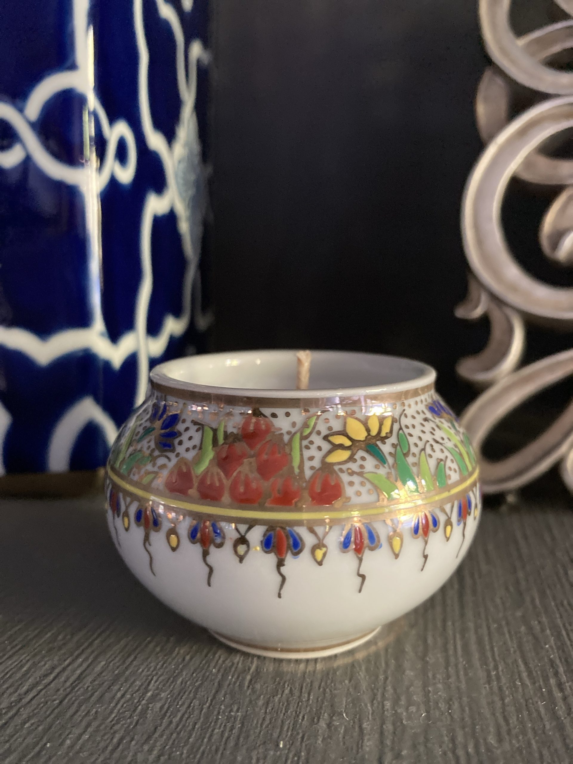 45gms pure soy wax hand poured into one of our exclusive range of handmade ceramics. This gorgeous small trinket bowl is in the Benjarong style.