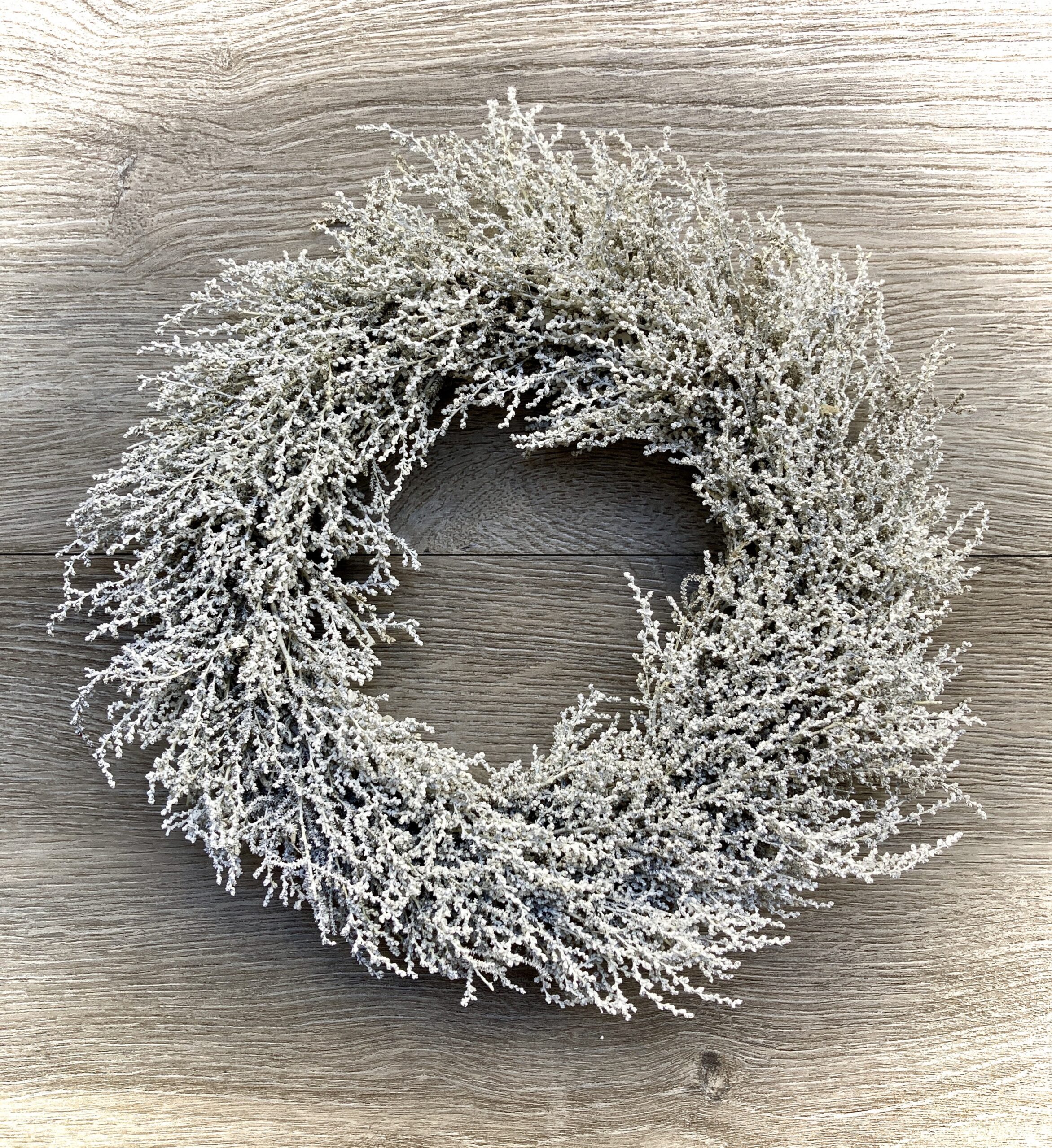 This stunning wreath is handmade by the local women in the farming community in Grabouw using preserved foliage that is treated to maintain its product colour indefinitely.