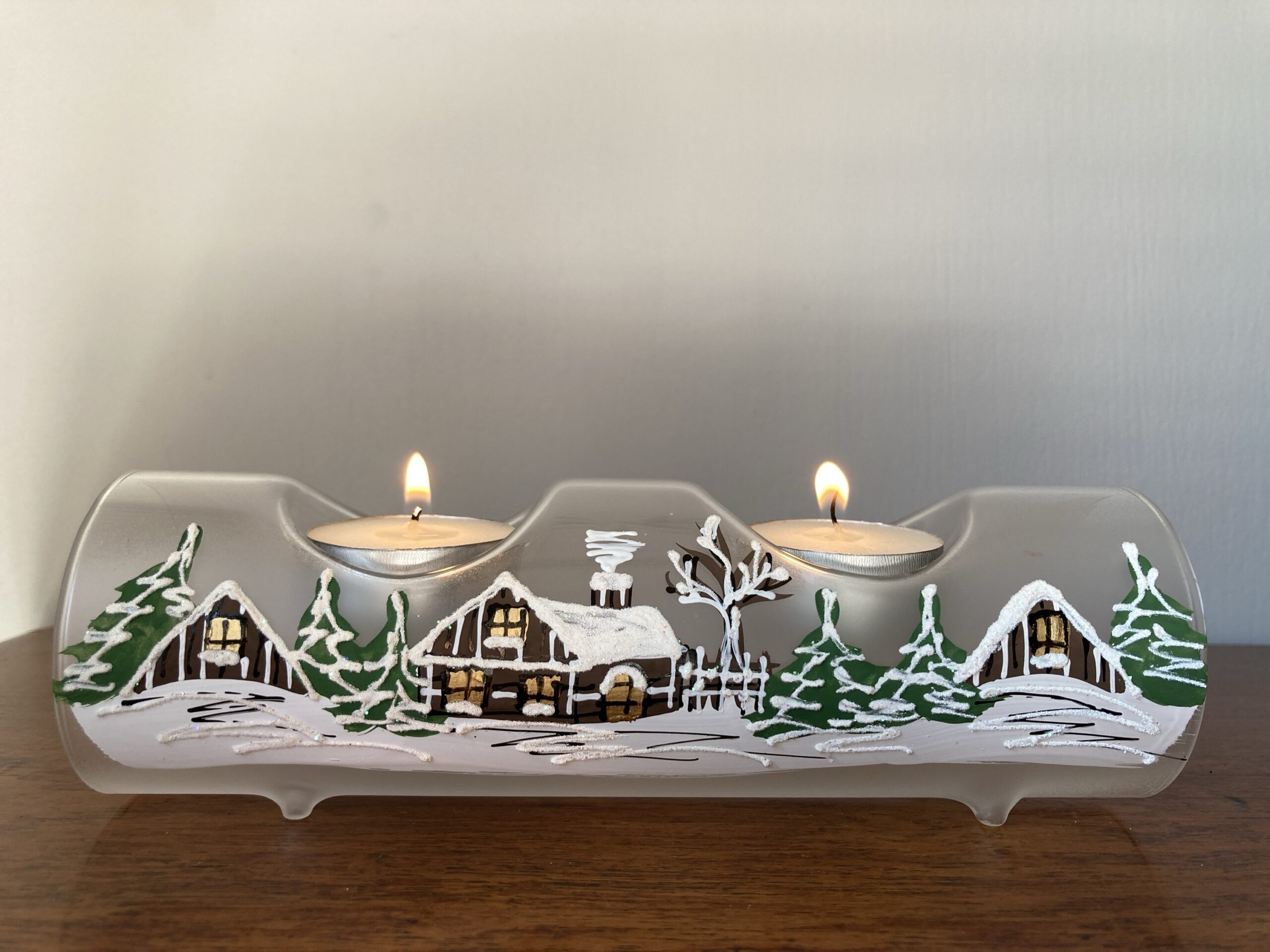 - Our best selling hand blown glass ornament now available in a tealight candle holder in clear glass with a winter village scene inspired by the village where these baubles are made in the mountains of Bohemia